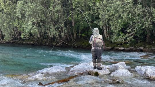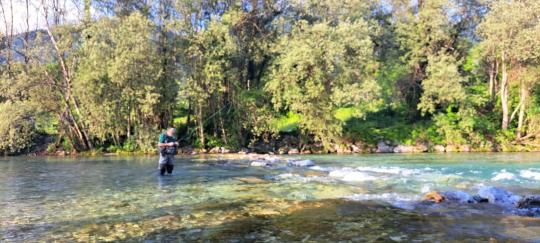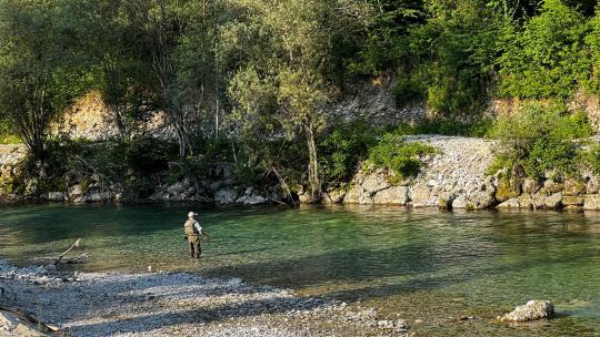Fliegenfischen an der Soča in Slowenien